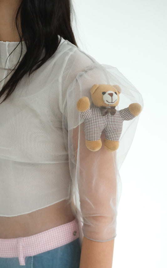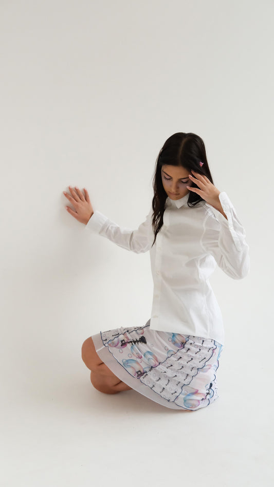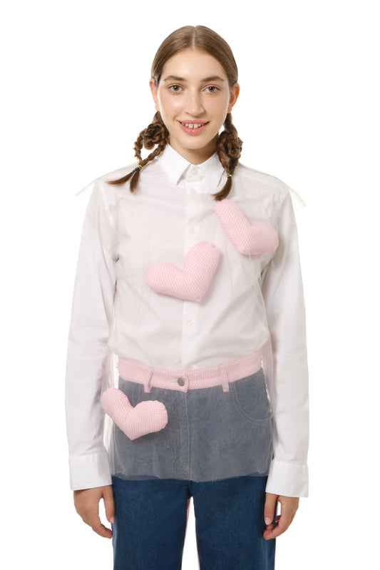 Tulle Overlay shirt with heart pillows
